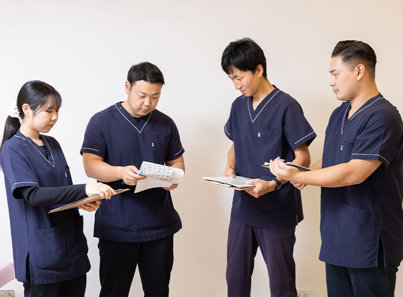 また、患者さまの状態把握や治療の進行状況を院長を中心としてカンファレンスを設けることにより、スタッフ一丸となって取り組んでいます。