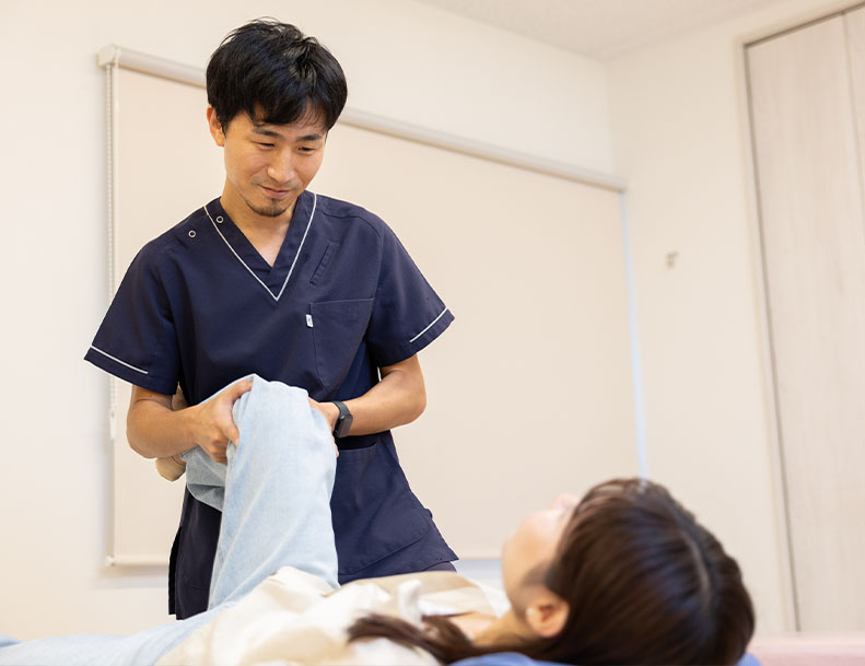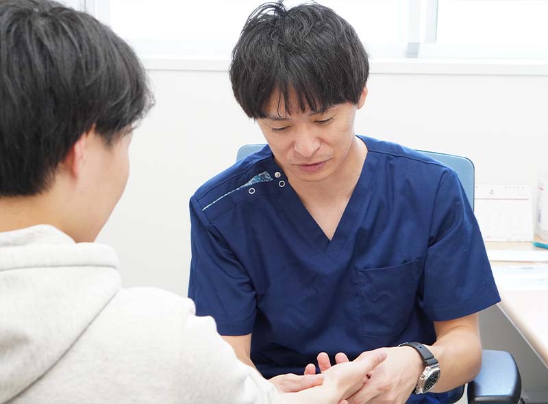 問診票や見た目だけでは症状の具合などがわからない場合もありますので、しっかりお一人おひとりの声に耳をかたむけ、直接患部に触れ、そこからみえてくる症状に対して、適切な施術計画を行いますので、どんな些細なことでもお聞かせください。