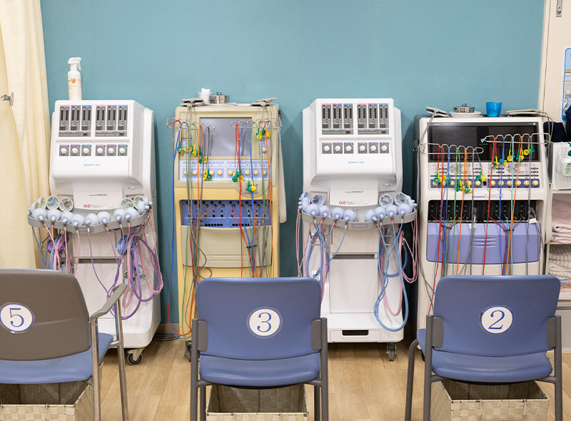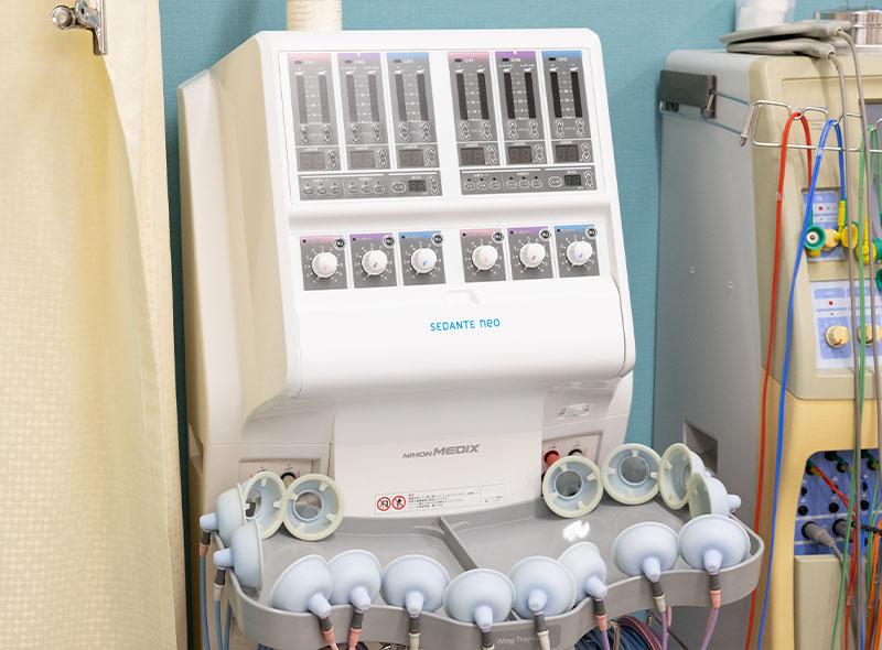 高・中・低周波を患部にあてて、筋肉の緊張を和らげ、血行を良くすることによって、痛みを緩和していくなど、症状にあわせた電気治療を行います。